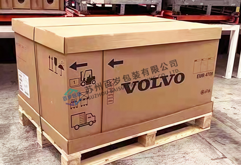 目前汽車零部件物流周轉包裝以塑料箱、木箱、鐵箱、重型周轉紙箱等爲主。内材以珍株棉、泡沫、瓦楞紙格架等進行輔助。 重型紙箱是由高克重純木槳牛卡,高強芯紙和高強瓦紙等材質制成,常用楞型爲AAA瓦楞紙闆,紙闆厚度15mm。制成紙箱承壓強度高,抗壓強度能達到木闆水平,耐破強,防潮性好,承重可達5噸左右,稱爲重型紙箱。因其可折疊存儲不占空間,可精美印刷美觀耐用,裝箱方便快捷,使用時拆箱簡單方便,易於操作拆裝箱速度遠遠快於木箱,並且可重複使用,能夠爲企業減少成本、節省倉儲空間。已廣泛應用於汽車零部件運輸及周轉使用。